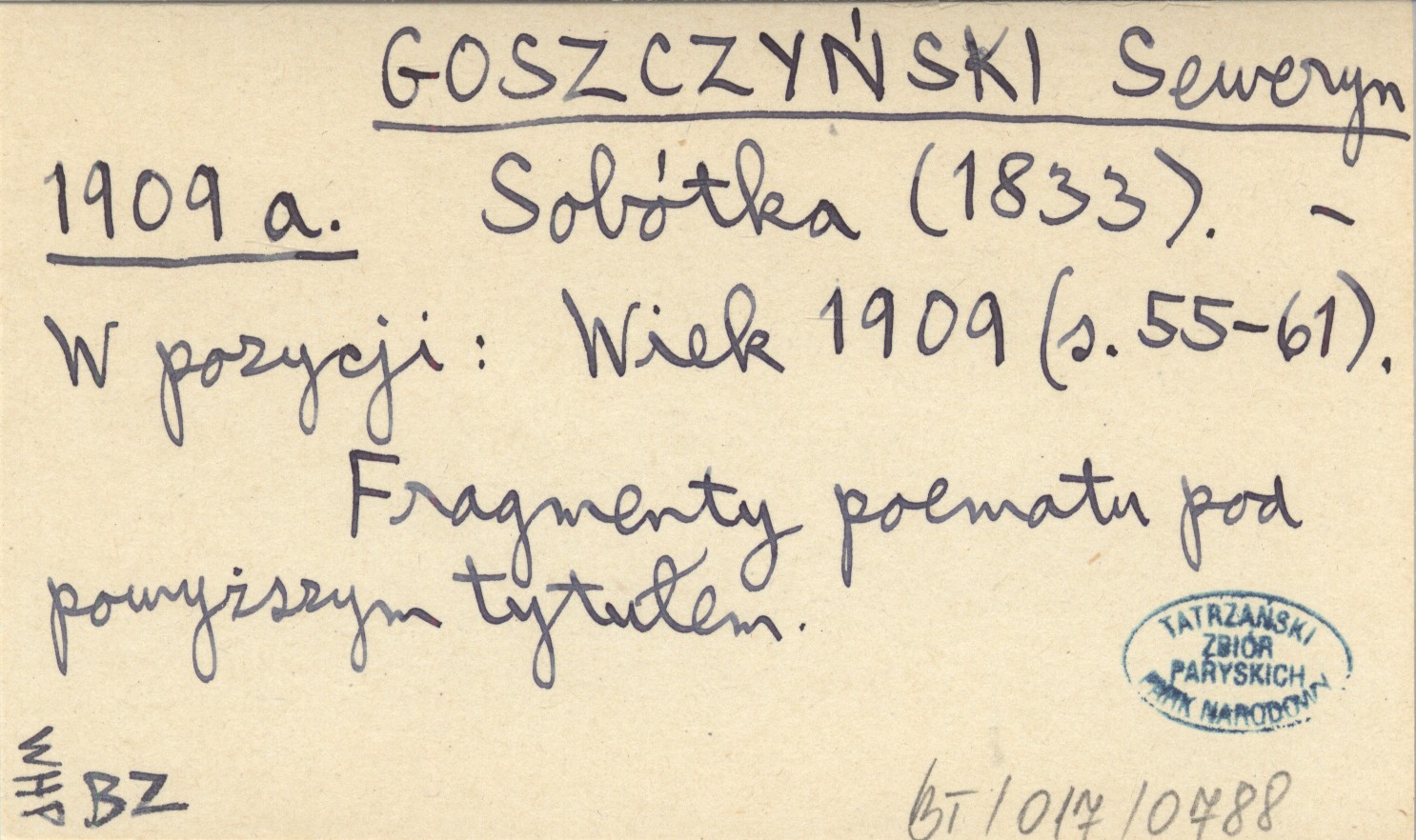 Wiek 1909. , S. 55-61. Fragmenty poematu pod powyższym tytułem.