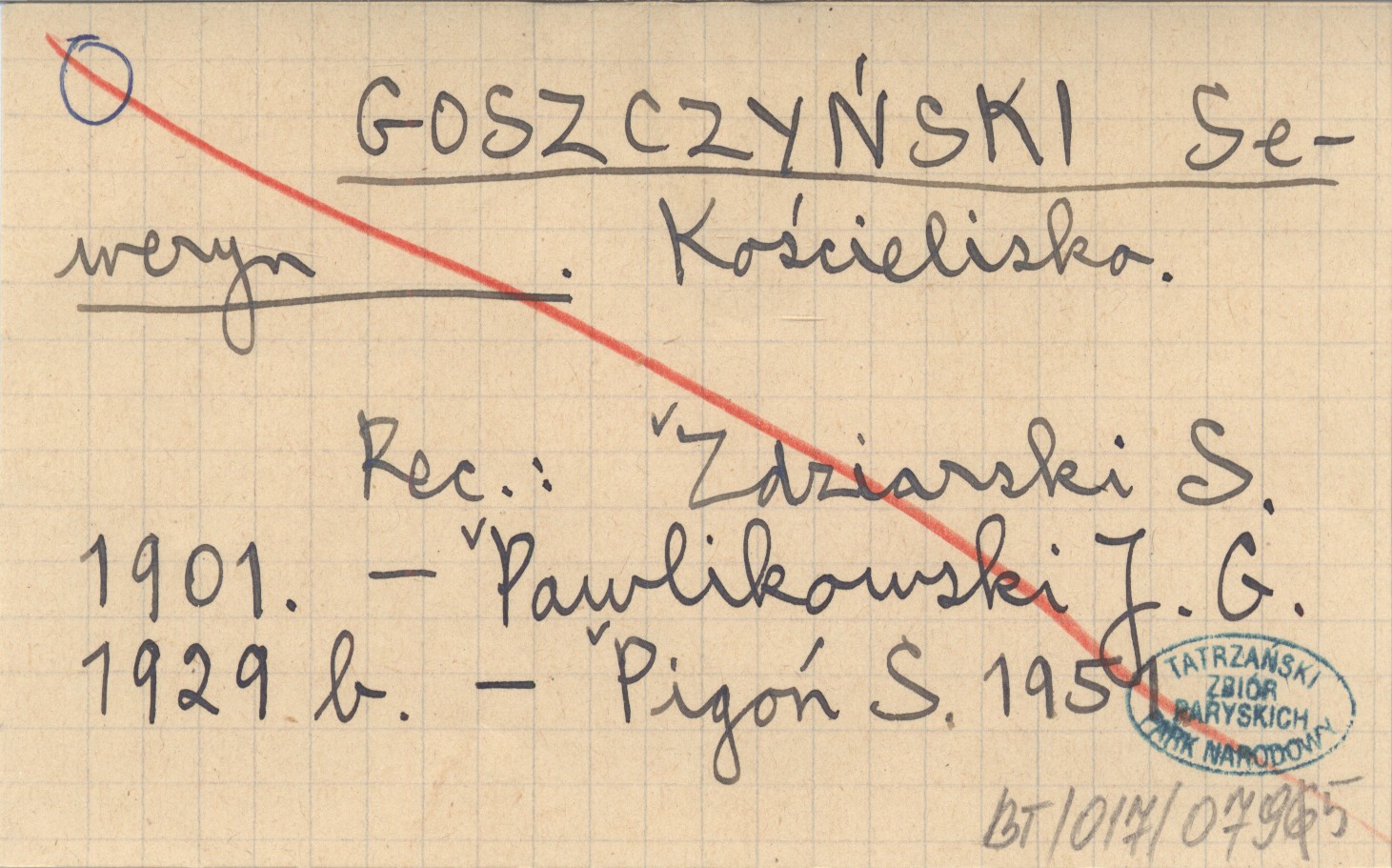 Projekt Digitalizacja fiszek z Bibliografią Tatr i Podtatrza Witolda Henryka Paryskiego jest finansowany ze środków Ministra Kultury i Dziedzictwa Narodowego oraz Tatrzańskiego Parku Narodowego.