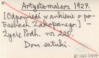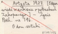 Artysta 1927 [Odpowiedź w ankiecie o potrzebach Zakopanego.]
