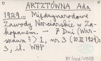 ARTZTÓWNA Ada 1929... Międzynarodowe Zawody Narciarskie w Zakopanem.