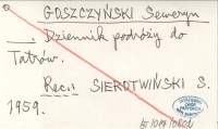 GOSZCZYŃSKI Seweryn Dziennik podróży do Tatrów.