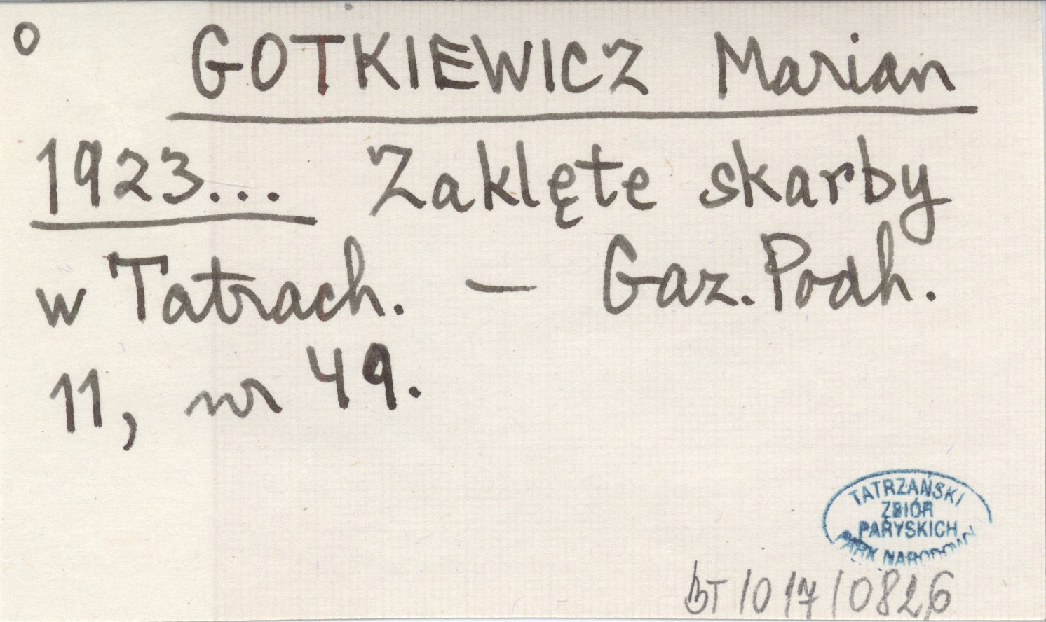 GOTKIEWICZ Marian 1923... Zaklęte skarby w Tatrach.