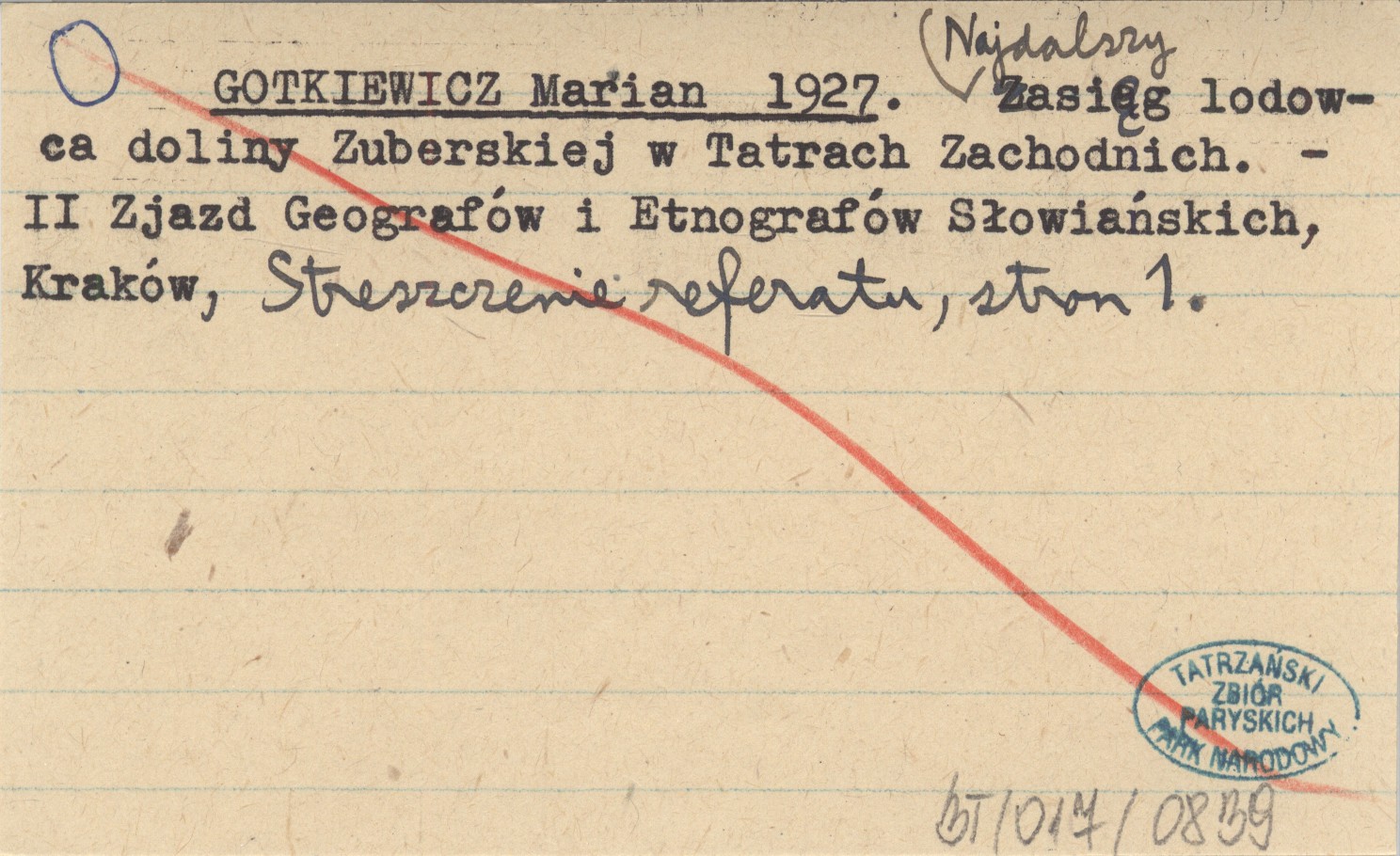 GOTKIEWICZ Marian 1927 Najdalszy zasięg lodowca doliny Zuberskiej w Tatrach Zachodnich.