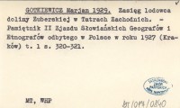 GOTKIEWICZ Marjan 1929 Zasięg lodowca doliny Zuberskiej w Tatrach Zachodnich.