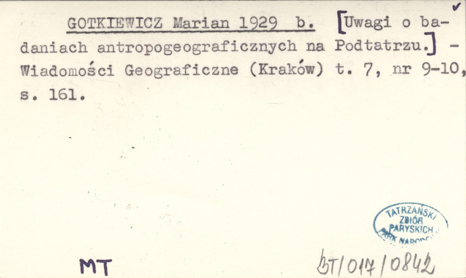 GOTKIEWICZ Marian 1929 b [Uwagi o badaniach antropogeograficznych na Podtatrzu.].