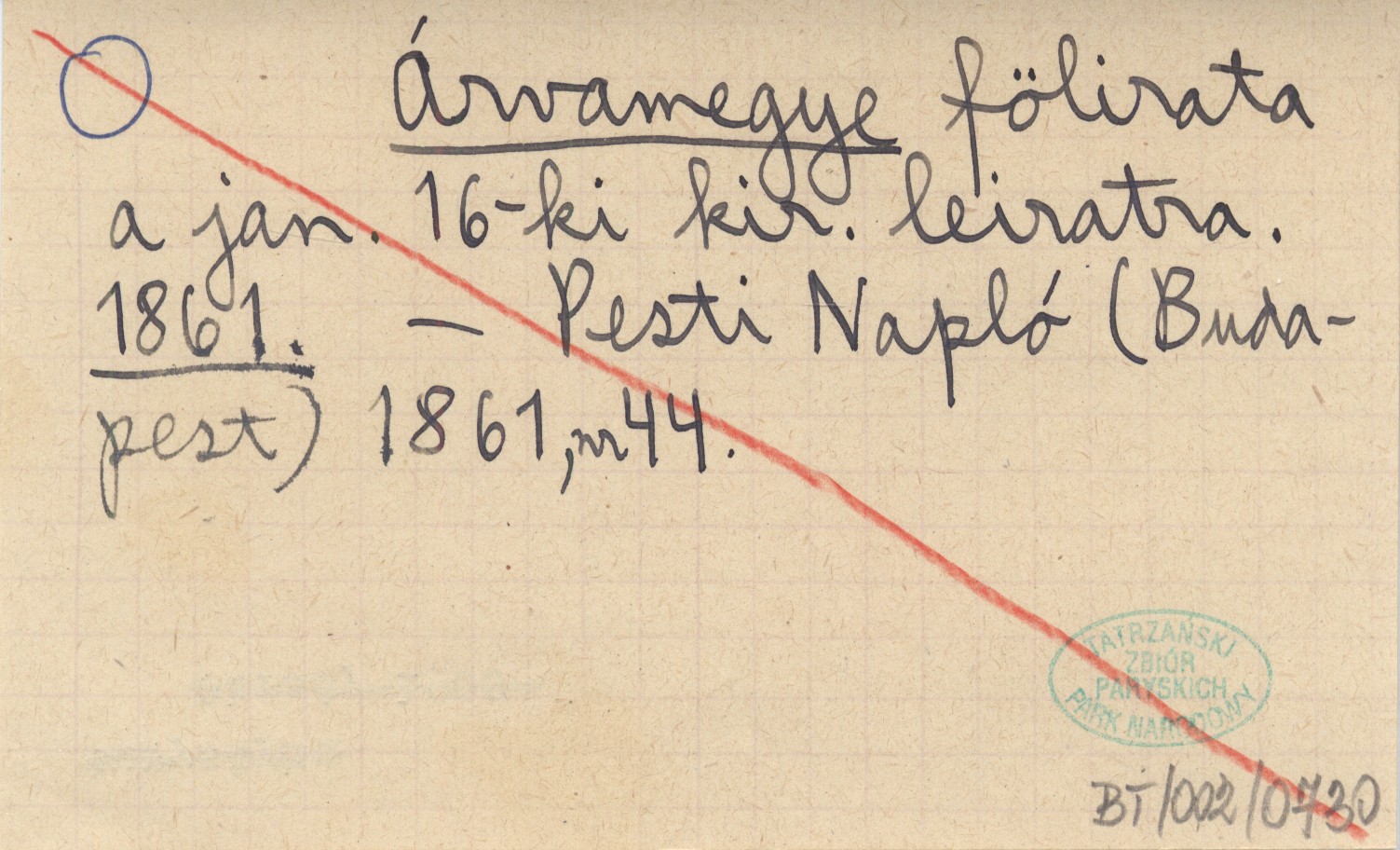Árvamegye fölirata a jan. 16-ki kir. leiratra. 1861