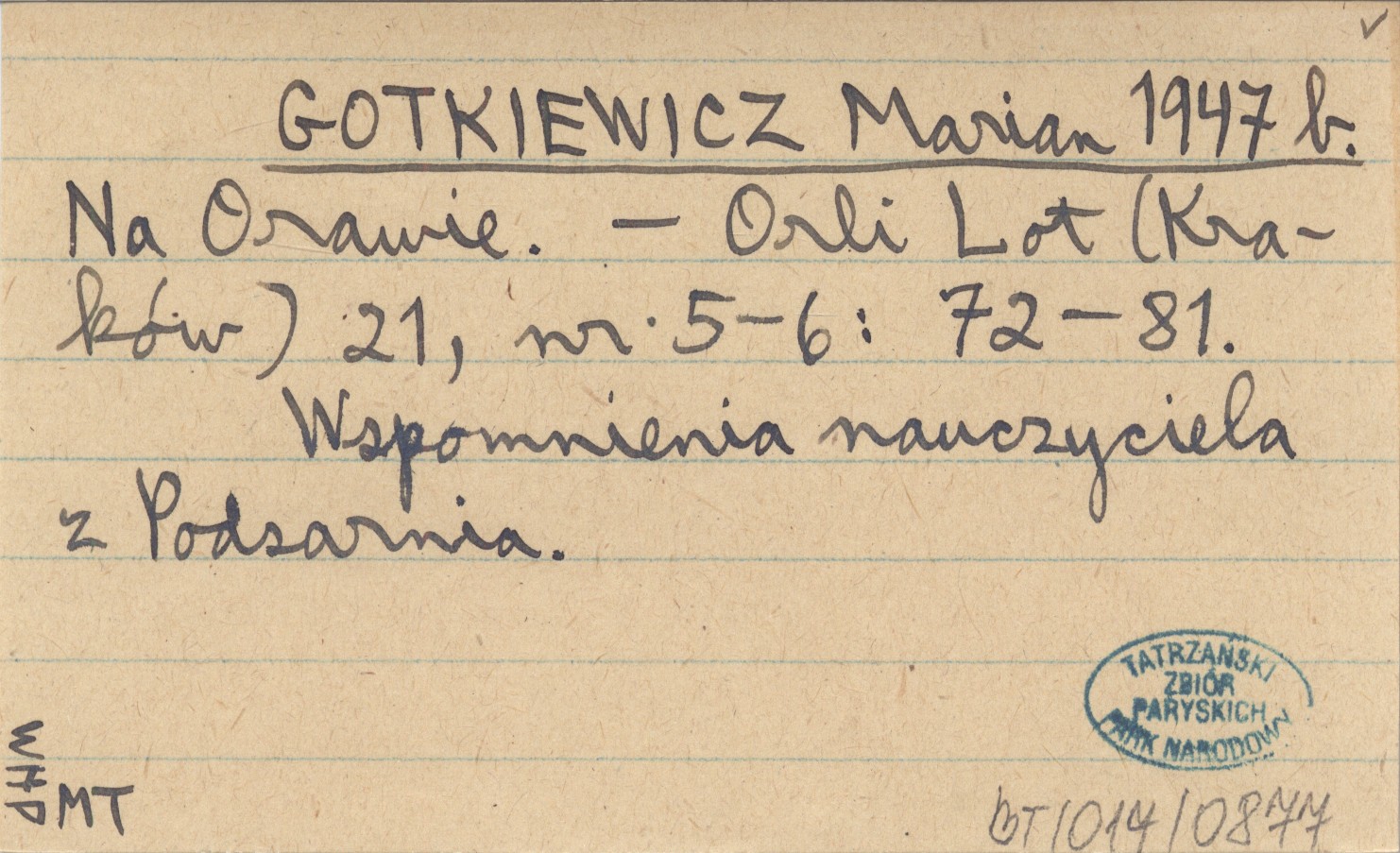 Orli Lot (Kraków) , 21, nr 5-6: 72-81. Wspomnienia nauczyciela z Podsarnia.