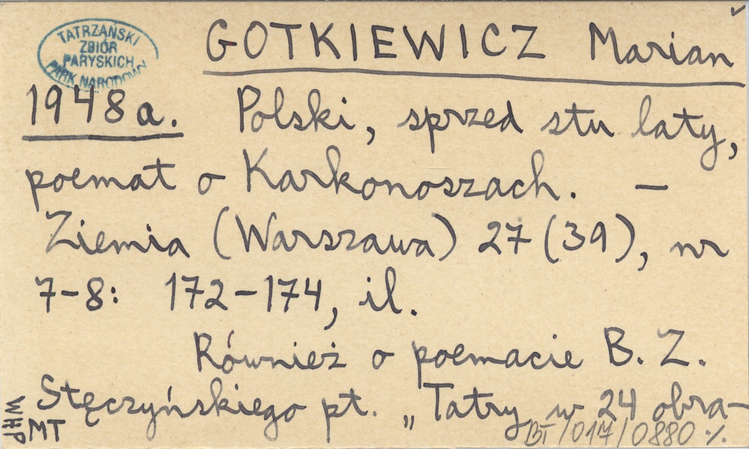 GOTKIEWICZ Marian 1948 a Polski, sprzed stu laty, poemat o Karkonoszach.