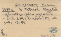 GOTKIEWICZ Marian 1947 a W Tatrach. Wyjątek z dłuższego opisu wycieczki ...