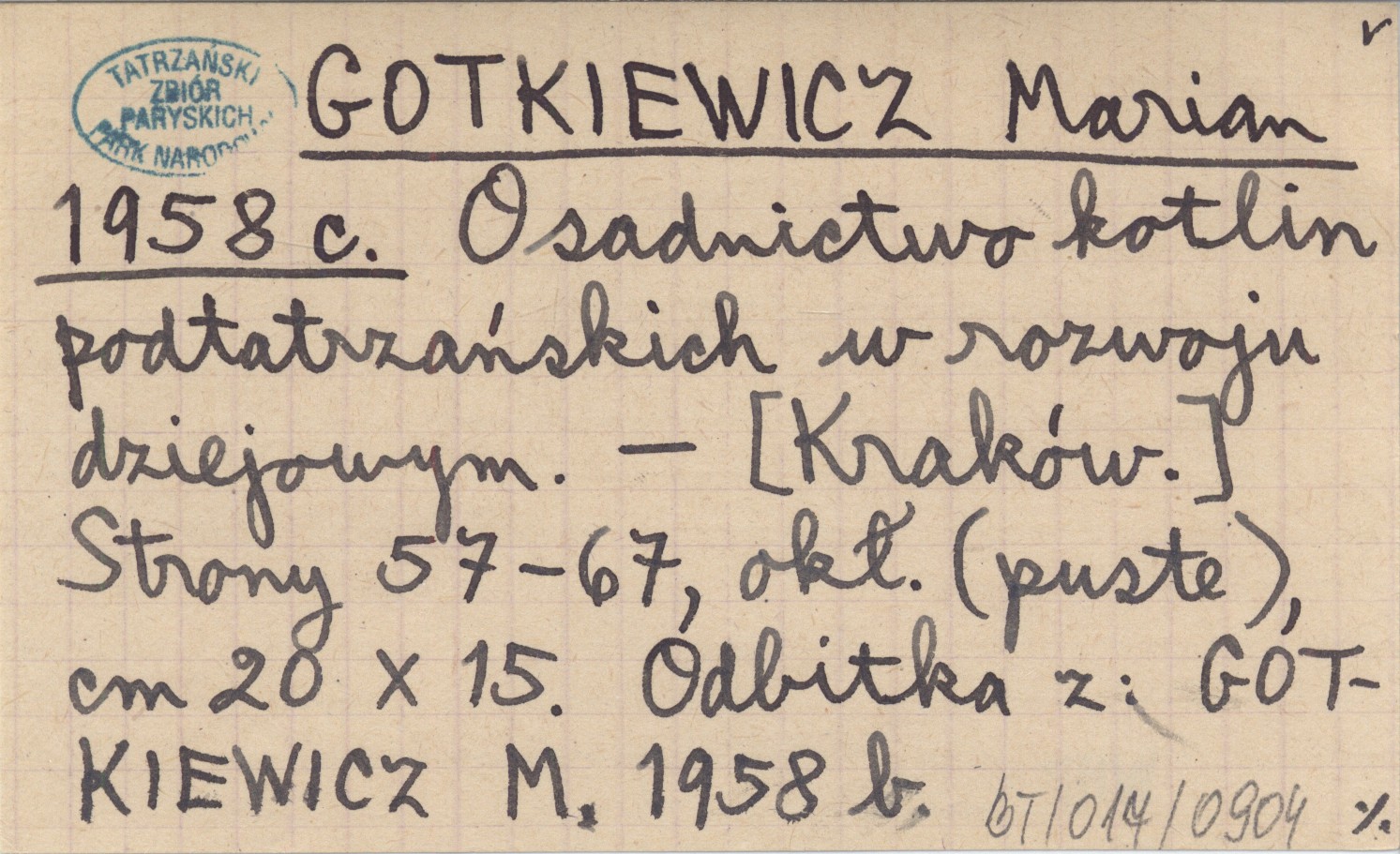 GOTKIEWICZ Marian 1958 c Osadnictwo kotlin podtatrzańskich w rozwoju dziejowym.