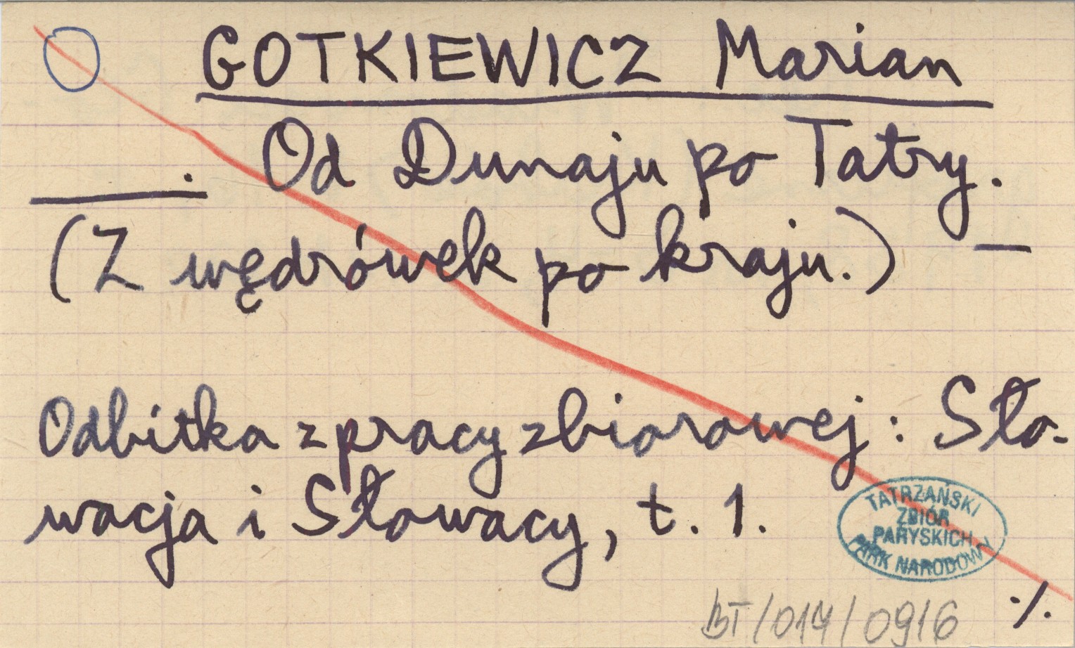 GOTKIEWICZ Marian Od Dunaju po Tatry. (Z wędrówek po kraju.).