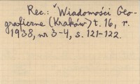 Słowacja i Słowacy. , T. 1, odb. REC: Wiadomości Geograficzne (Kraków) t. 16, r. 1938, nr 3-4: 121-122.