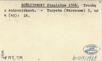 GOŹDZIEWSKI Stanisław 1956 Trochę o schroniskach.