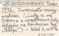 GOŹDZIKIEWICZ Teodor 1946 Zwierciadło rzeczywistości. ("Listy ze wsi" Orkana a współczesne listy chłopów na konkursie tyg. "Chłopi".).
