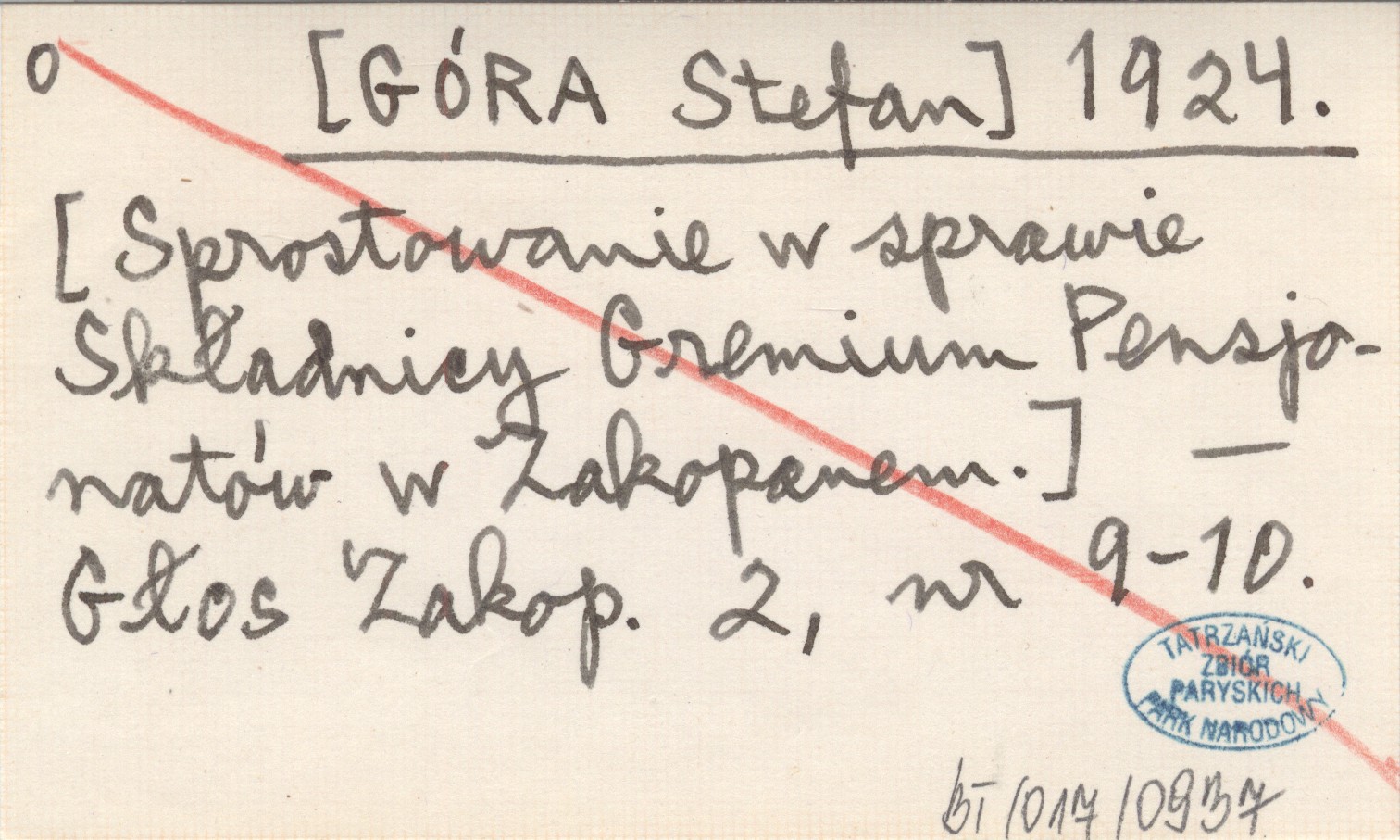 [GÓRA Stefan] 1924 [Sprostowanie w sprawie Składnicy Gremium Pensjonatów w Zakopanem.].