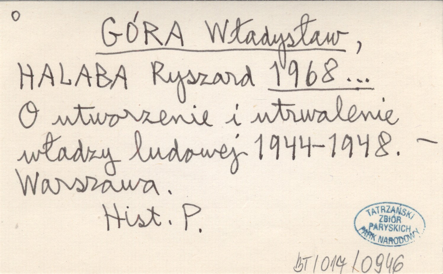 GÓRA Władysław HALABA, Ryszard. ; 1968... O utworzenie i utrwalenie władzy ludowej 1944-1948.