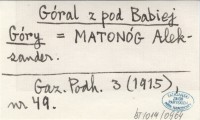 Góral z pod Babiej Góry MATONÓG Aleksander Gazeta Podhalańska 3 (1915), nr 49.