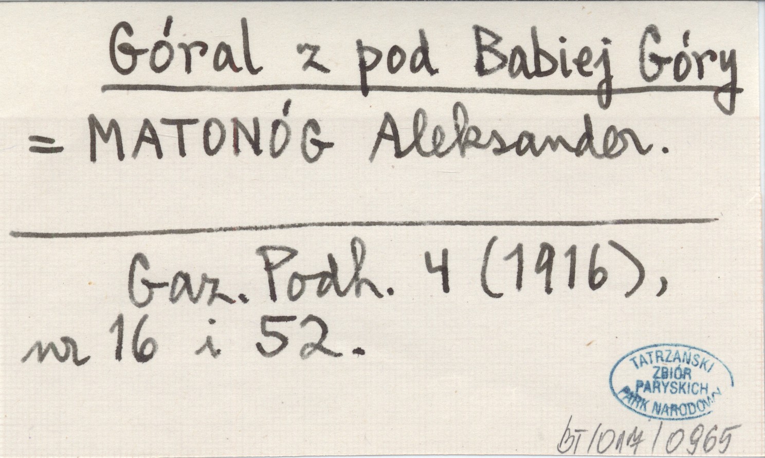 Góral z pod Babiej Góry MATONÓG Aleksander Gazeta Podhalańska 4 (1916), nr 16, 52.