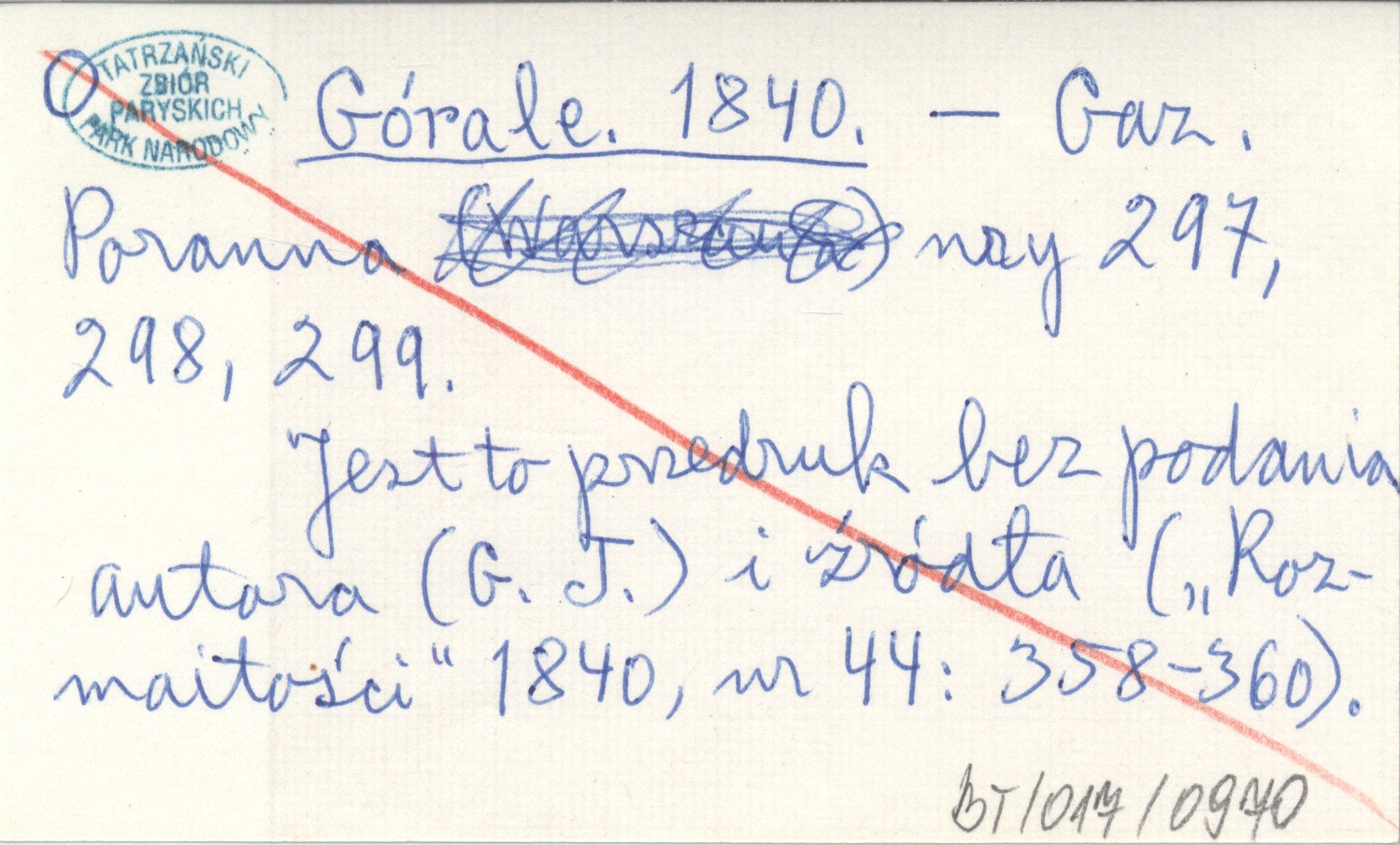 Gazeta Poranna, Nr 297-299. Jest to przedruk bez podania autora (G. J.) i źródła ("Rozmaitości" 1840, nr 44: 358-360).