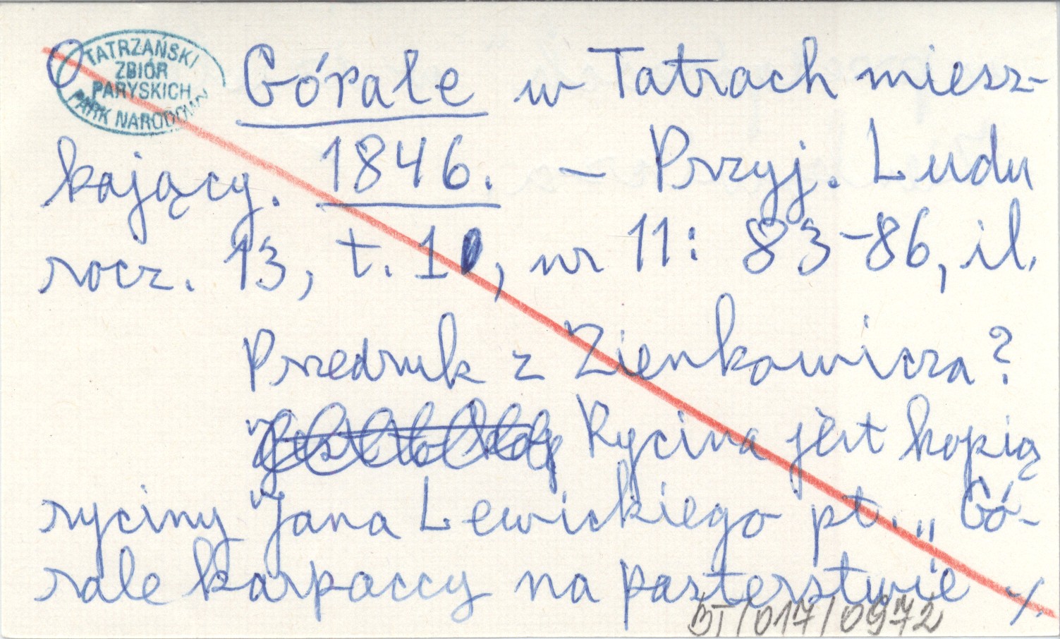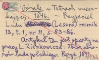 Przyjaciel Ludu (Leszno) , R. 13, t. 1, nr 11: 83-86, il. Rycina jest kopią ryciny Jana Lewickiego pt. "Górale karpaccy na pasterstwie w przedgórzach" w dziele Zienkowicza. Artykuł ten jest oparty na pracy L. Zienkowicza: Zbiór ubiorów ludu polskiego. Paryż 1841. Przedruk z Zienkowicza?