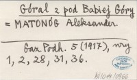 Góral z pod Babiej Góry MATONÓG Aleksander Gazeta Podhalańska 5 (1917), nr 1, 2, 28, 31, 36.