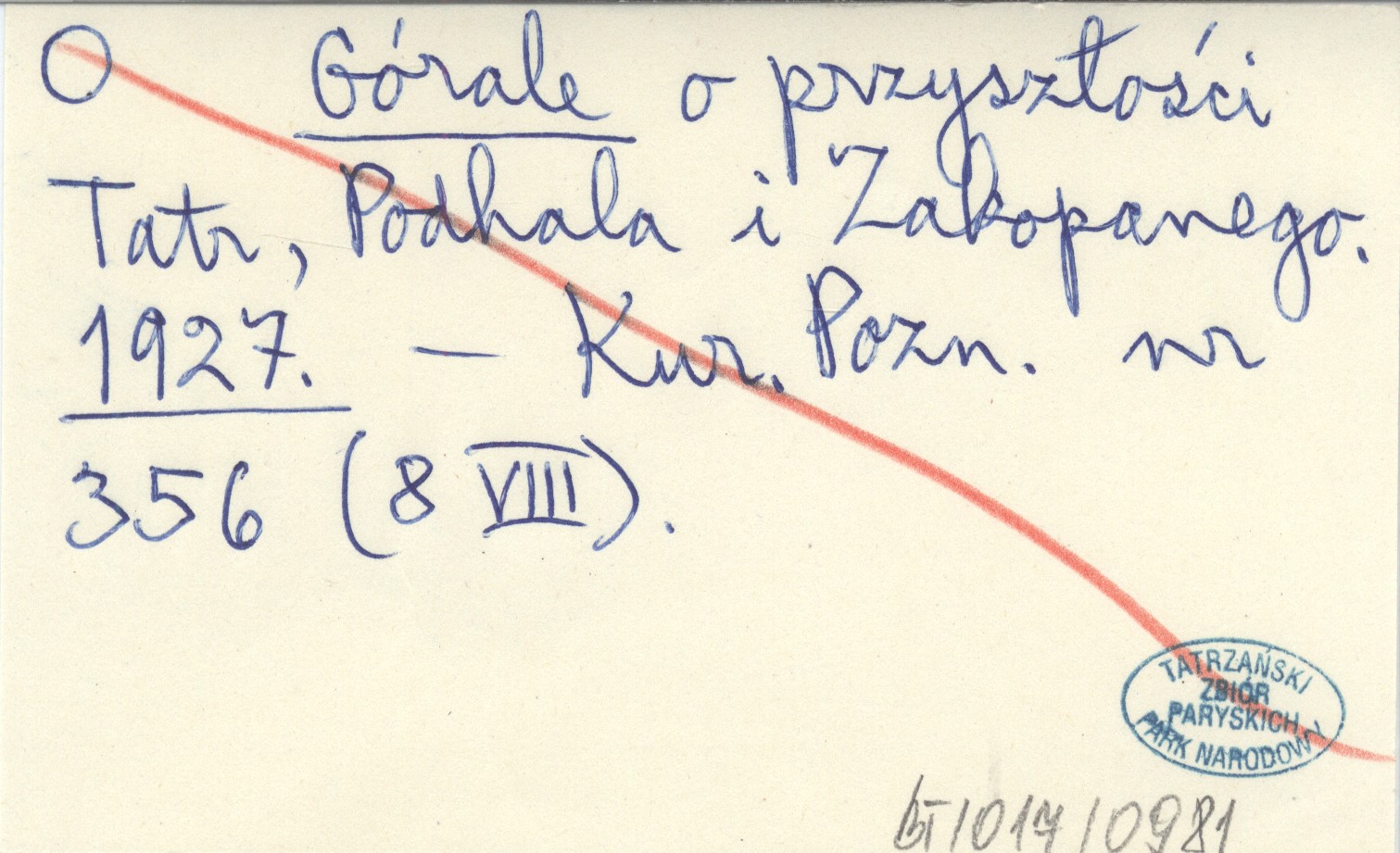 Projekt Digitalizacja fiszek z Bibliografią Tatr i Podtatrza Witolda Henryka Paryskiego jest finansowany ze środków Ministra Kultury i Dziedzictwa Narodowego oraz Tatrzańskiego Parku Narodowego.