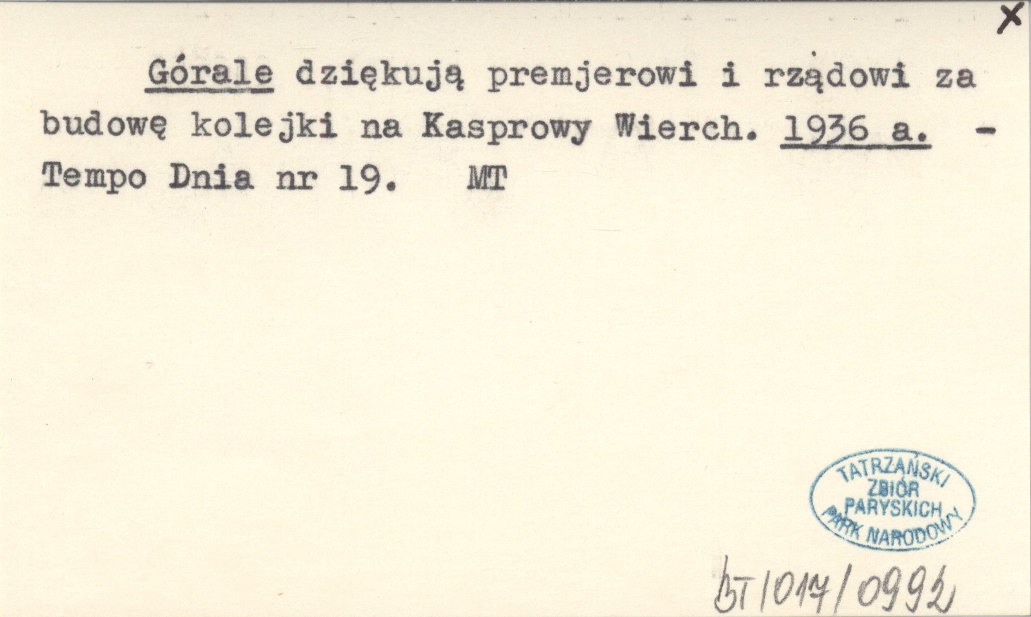 Projekt Digitalizacja fiszek z Bibliografią Tatr i Podtatrza Witolda Henryka Paryskiego jest finansowany ze środków Ministra Kultury i Dziedzictwa Narodowego oraz Tatrzańskiego Parku Narodowego.