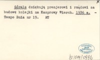Górale dziękują premjerowi i rządowi za budowę kolejki na Kasprowy Wierch. 1936 a