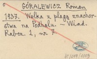 GÓRALEWICZ Roman 1937 Walka z plagą znachorstwa na Podhalu.