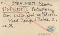 GÓRALEWICZ Roman 1937 (1938?) Fantastyczny stan kucia koni na Podhalu.