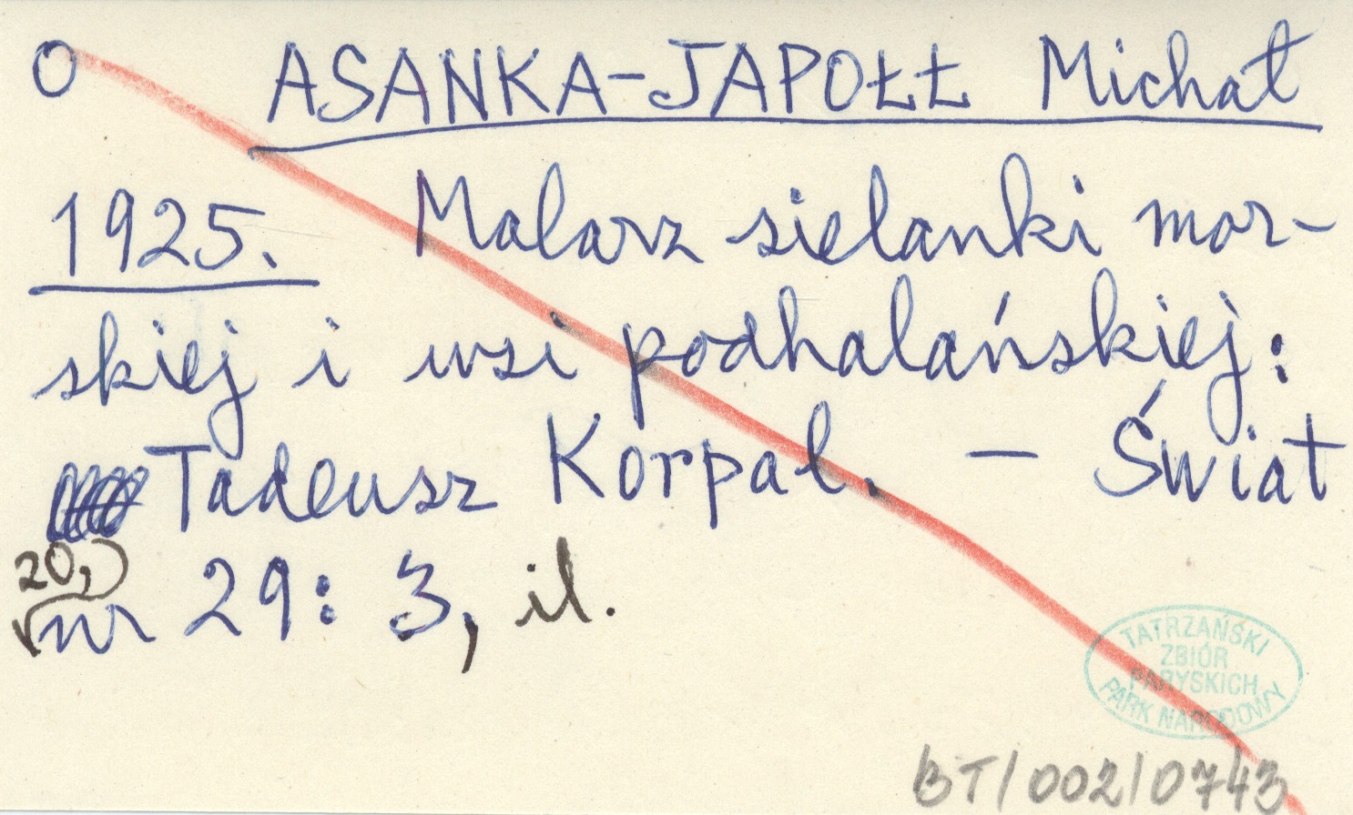 ASANKA-JAPOŁŁ Michał 1925 Malarz sielanki morskiej i wsi podhalańskiej: Tadeusz Korpal.