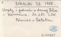 GÓRALSKI Zb. 1988... Urzędy i godności w dawnej Polsce.
