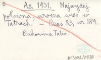 As. 1931 Najwyżej położona, urocza wieś w Tatrach.