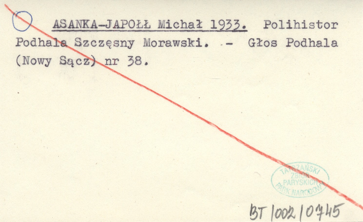ASANKA-JAPOŁŁ Michał 1933 Polihistor Podhala Szczęsny Morawski.