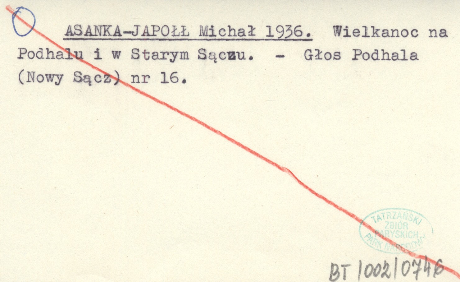 ASANKA-JAPOŁŁ Michał 1936 Wielkanoc na Podhalu i w Starym Sączu.