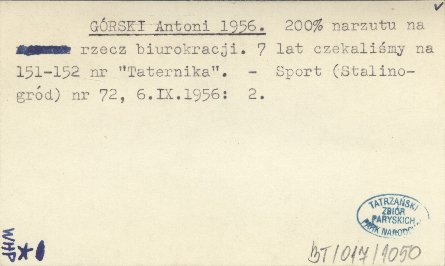 GÓRSKI Antoni 1956 200% narzutu na rzecz biurokracji. 7 lat czekaliśmy na 151-152 nr "Taternika".