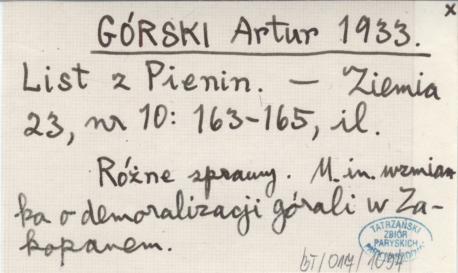 Ziemia, 23, nr 10: 163-165, il. Różne sprawy. M.in. wzmianka o demoralizacji górali w Zakopanem.