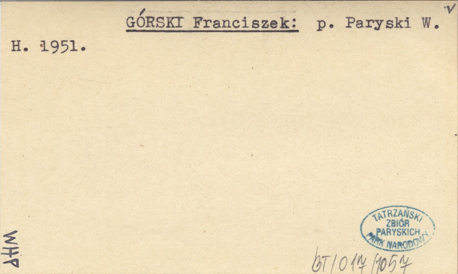 Projekt Digitalizacja fiszek z Bibliografią Tatr i Podtatrza Witolda Henryka Paryskiego jest finansowany ze środków Ministra Kultury i Dziedzictwa Narodowego oraz Tatrzańskiego Parku Narodowego.