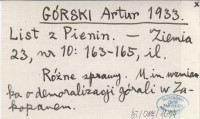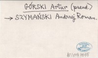 GÓRSKI Artur SZYMAŃSKI Andrzej Roman (1941-1987). W "Podtatrzu" (wg "Podtatrza" nr 32, 1988, s. 135).