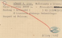 GÓRSKI I. 1916 Kościuszko w literaturze polskiej XVIII w.