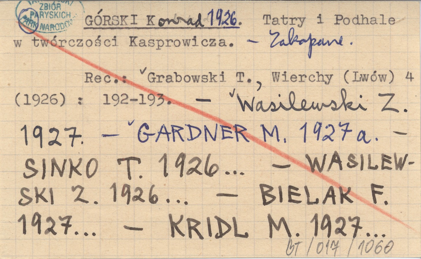 Zakopane , REC: GRABOWSKI T., Wierchy (Lwów) 4 (1926): 192-193 ; WASILEWSKI Z. 1927 ; GARDNER M. 1927 a ; SINKO T. 1926... ; WASILEWSKI Z. 1926... ; BIELAK F. 1927... ; KRIDL M. 1927... ; KOLBUSZEWSKI J. 1975, s. 52 ; Głos Zakopanego 4 (1926), nr 23-24 ; PŁOSZEWSKI L. 1928... ; Tatry 1926... ;