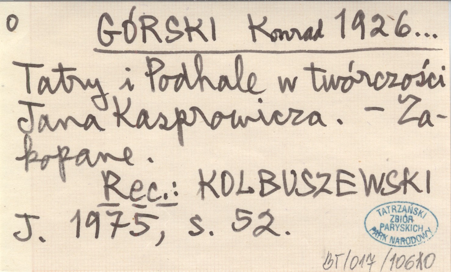 GÓRSKI Konrad 1926... Tatry i Podhale w twórczości Kasprowicza.
