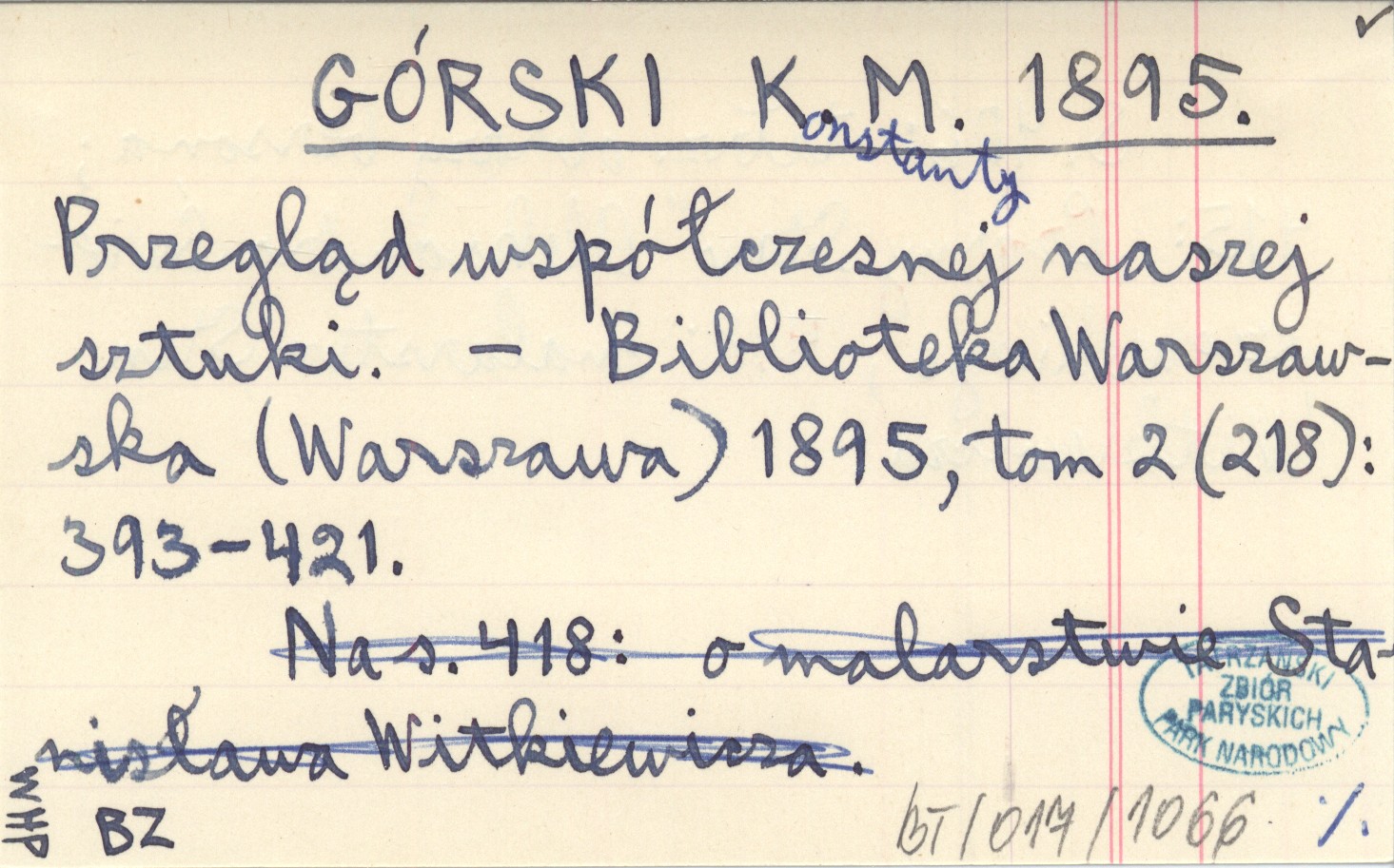 GÓRSKI Konstanty M. 1895 Przegląd współczesnej naszej sztuki.