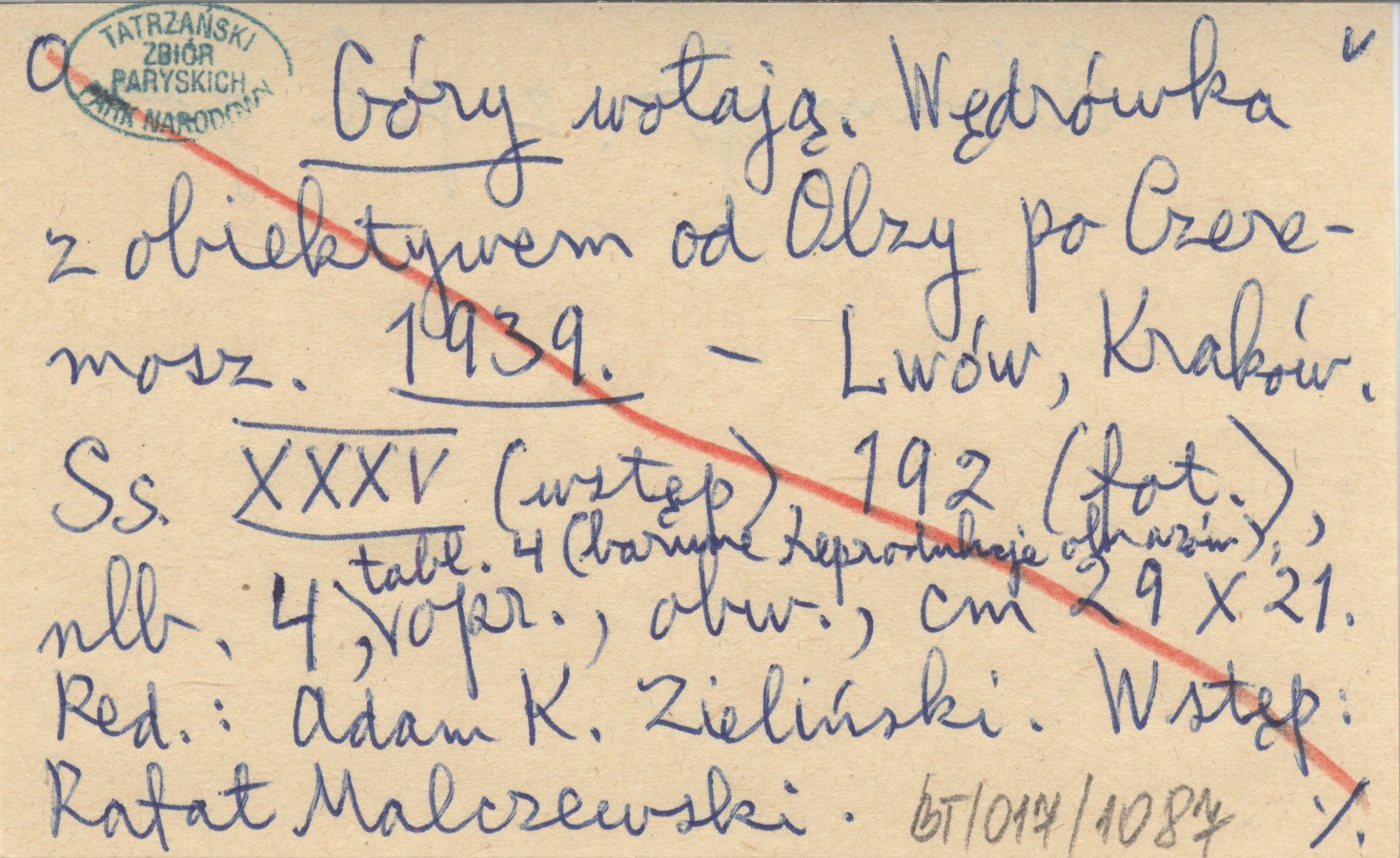 RED: ZIELIŃSKI, Adam K. ; Góry wołają. Wędrówka z obiektywem od Olzy po Czeremosz. 1939