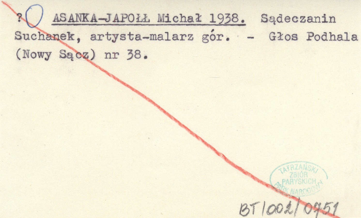 ASANKA-JAPOŁŁ Michał 1938 Sądeczanin Suchanek, artysta - malarz gór.