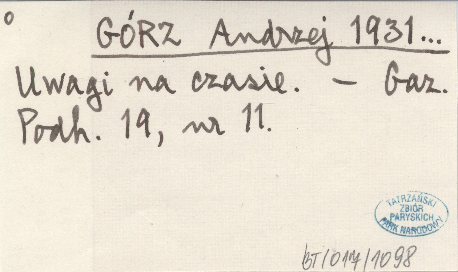 Projekt Digitalizacja fiszek z Bibliografią Tatr i Podtatrza Witolda Henryka Paryskiego jest finansowany ze środków Ministra Kultury i Dziedzictwa Narodowego oraz Tatrzańskiego Parku Narodowego.