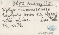 GÓRZ Andrzej 1931... Wpływ równomiernego żywienia krów na wydajność mleka.