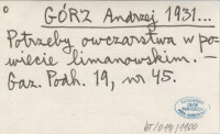 GÓRZ Andrzej 1931... Potrzeby owczarstwa w powiecie limanowskim.