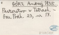 GÓRZ Andrzej 1935... Pasterstwo w Tatrach.