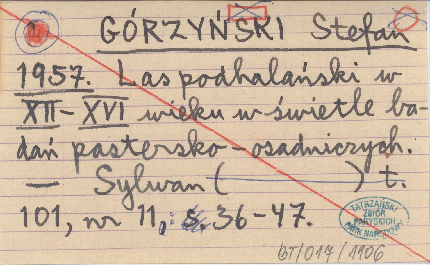GÓRZYŃSKI Stefan 1957 Las podhalański w XII-XVI wieku w świetle badań pastersko-osadniczych.